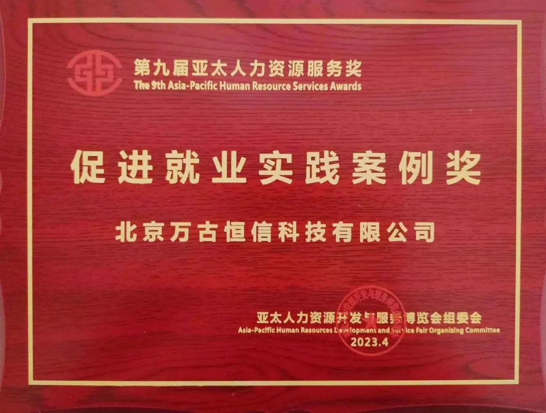 近日,第二十一届中国国际人才交流大会、第十九届中国人力资源服务业高峰论坛、第九届亚太人力资源开发与服务博览会、第九届亚太人力资源服务奖颁奖仪式在深圳隆重举行。 万古人力凭借专业的服务、优质的品牌口碑和影响力,荣获亚太人力资源开发与服务博览会组委会颁发的“促进就业实践案例奖”,万古人力董事长兼CEO衣景春先生荣获“创新管理者奖”,取得了企业与个人两大奖项的双丰收。 促进就业实践案例奖 创新管理者奖 关于亚太人力资源服务奖 高峰论坛是国内第一个人力资源服务行业论坛,自2004年年以来已成功举办十八届,是中国国际人才交流大会的重要板块之一;而高峰论坛中亚太人力资源服务奖评选自2015年启动以来,先后评选过“终身成就奖”“创新奖”“十大影响力人力资源平台”等70多个奖项,吸引了1000余家人力资源机构和个人参评,对弘扬创新创业精神、展现与时俱进的行业风貌起到了一定的推动和促进作用,受到行业机构的一致好评。 不忘初心 砥砺前行 万古人力荣获“促进就业实践案例奖”和“创新管理者奖”,不仅是行业对万古人力在人力资源领域服务专业度、品牌影响力的高度认可,更是对万古人力未来发展的长效激励。 未来,万古人力将持续凭借自身的专业优势、资源优势和创新的管理理念,助力企业充分挖掘潜力、创造价值,为企业提供更卓越的人力资源服务,促进人力资源服务行业向更高质量发展。